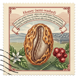 Parte della polpa rimane attaccata al chicco durante l’essiccazione, sviluppando dolcezza caramellata e acidità bilanciata. È un metodo intermedio, che unisce la complessità dei lavati alla rotondità dei naturali.